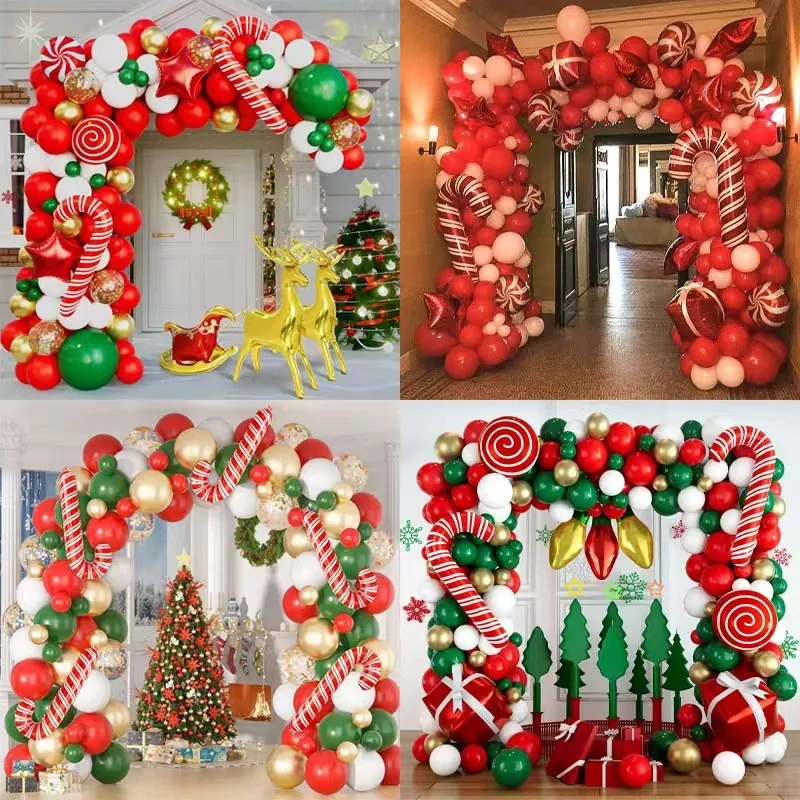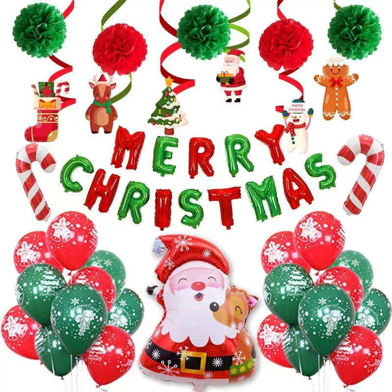 Temadesign: Aluminiumfilmballonger i form av julgodisrott, jultomten, julgranar, älg, etc., guldstjärnfärgade pappersballonger, röda och gröna klassiska matchande ballonger, etc. för att tillgodose behoven hos semestertema.