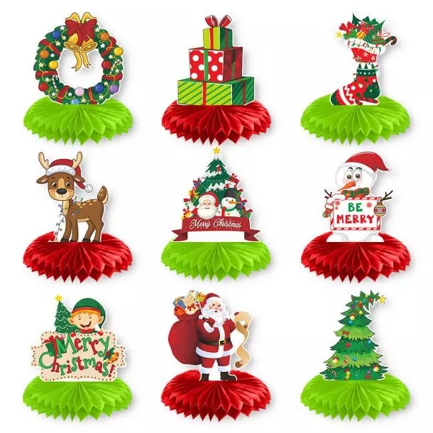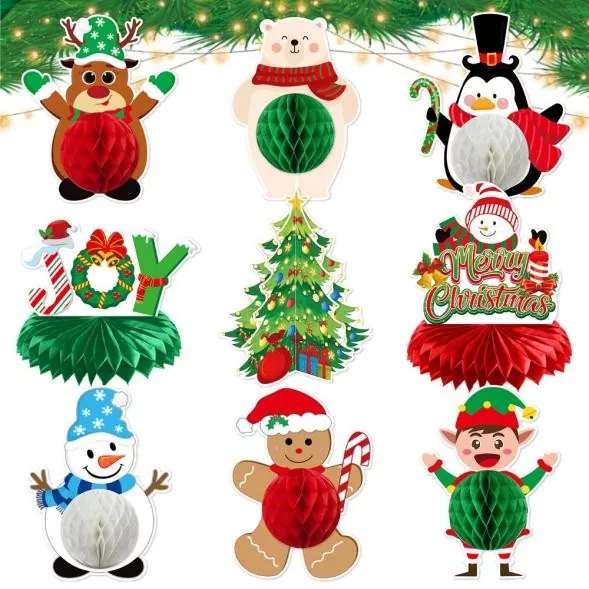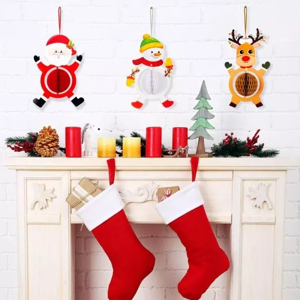 Våra julhonungskakprydnader har en tredimensionell honungskakstruktur. När de läggs platt verkar de lika tunna som ett pappersark, men utvecklas för att avslöja en helt ny dimension, vilket skapar livliga och rika juldesigner. Utöver de bekanta elementen i jultomten, julgranar och julstrumpor har många nya element införlivats. Dessa nya element är iögonfallande, unika och höjer omedelbart julsäsongen.