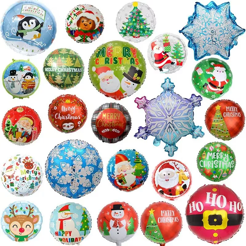 Julserier folie ballonger är aluminiumfolie dekorativa ballonger designade specifikt till jul. Designer för tema (som jultomten, cederträd och presentförpackningar) förbättrar den festliga atmosfären. Finns i storlekar som sträcker sig från 12 tum till 40 tum (cirka 30-102 cm), de kan användas med antingen helium eller luft, vilket gör dem lämpliga för kommersiella evenemang, heminredning och pop-up-evenemang.