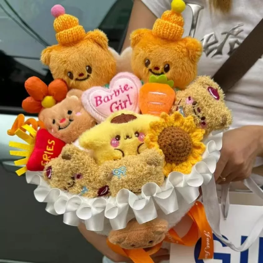 Dollbuketter kombinerar smart mjuka, gosiga plyschdockor med traditionella buketter. De är inte blommor, men de förmedlar känslor och glädje på ett mer kreativt och varaktigt sätt, vilket skapar ett unikt tillskott till fester och gåva-ge-tillfällen. Deras kärnvärde ligger i att blanda den tröstande känslan av dockor med den ceremoniella känslan av buketter.