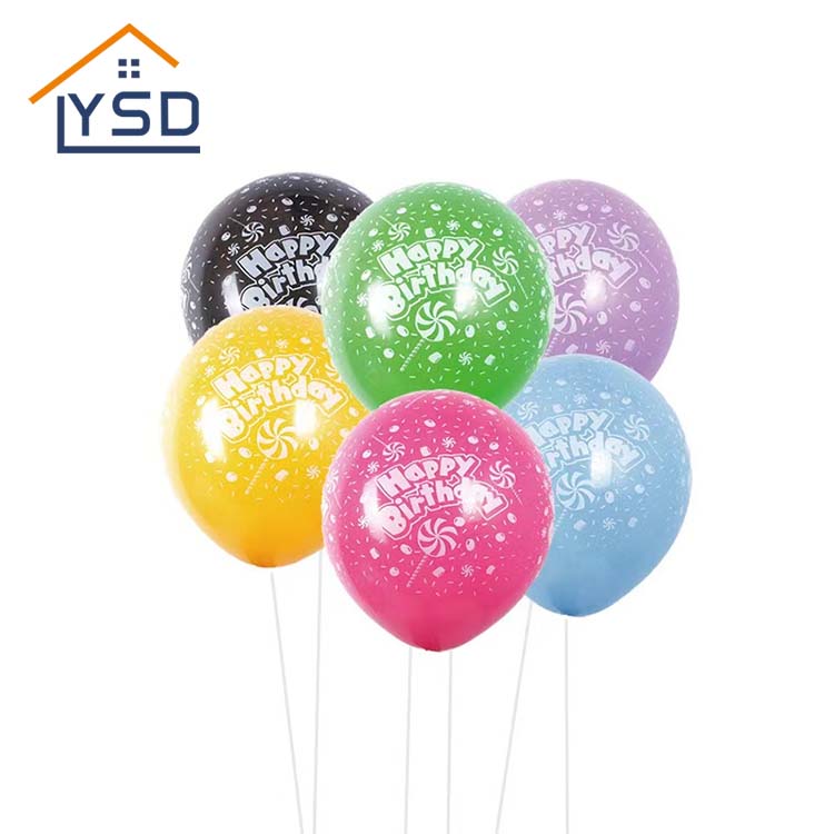 Grattis på födelsedagen tryckt latexballonger är ballonger med lycklig födelsedagstext eller andra födelsedagsrelaterade element tryckta på dem. Latexballongerna som produceras av YSD® uppfyller relevanta standarder och fokuserar på miljöskydd.