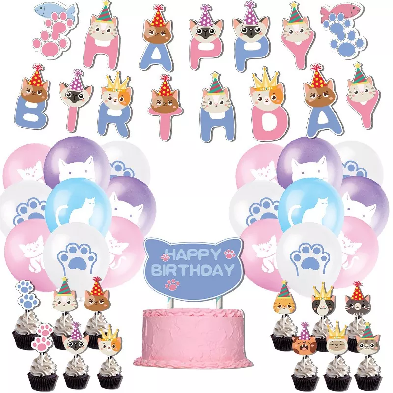 * **Rolig stil:** Vem säger att födelsedagar måste vara varma och inbjudande? Vi har också ett "Cat Sneaky"-tema! Dekorativa målningar har fåniga kattemojis, en banderoll med texten "Idag är jag kungen" och en bordslöpare med "Dried Fish Conservation Association". Detta set kommer garanterat att få dina gäster att skratta tills de får ont i magen, vilket perfekt fångar ditt husdjurs udda natur.