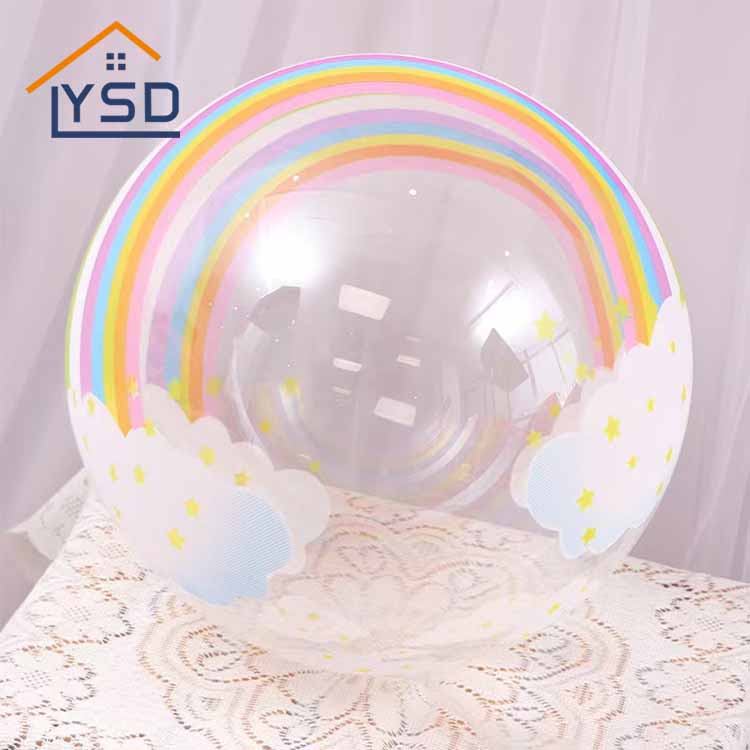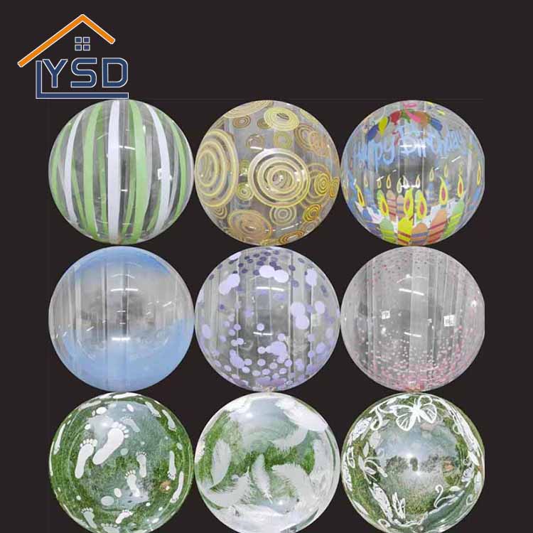 Tryckta bobo -ballongerär tillverkade av högkvalitativt TPU-material. Detta är inte vanlig plast! Det är född med ett "transparent filter", lika tydligt och ljust som kristall, och återspeglar en charmig lyster när ljuset passerar genom det. Strukturen är direkt full och känslan av lyx kommer.