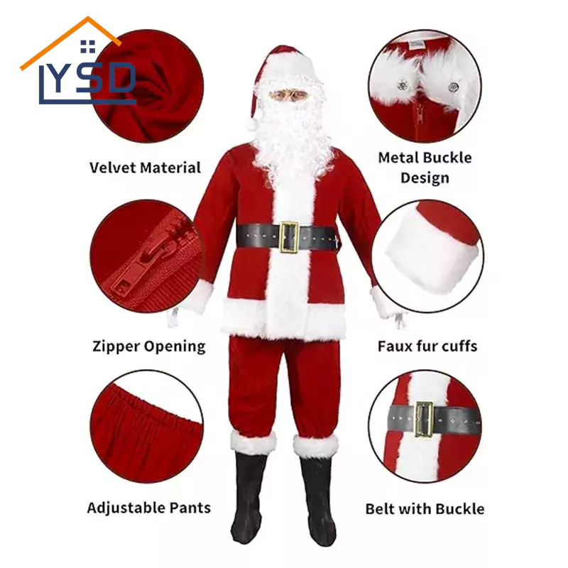 Santa Claus Costumes är ett viktigt julfesttillbehör som lägger till en festlig touch till alla tillfällen, från familjesammanträden till köpcentra -evenemang till företagets årsmöten. YSD: s Santa Claus -kostymer är ett populärt val för deras exceptionella kvalitet och olika stilar.