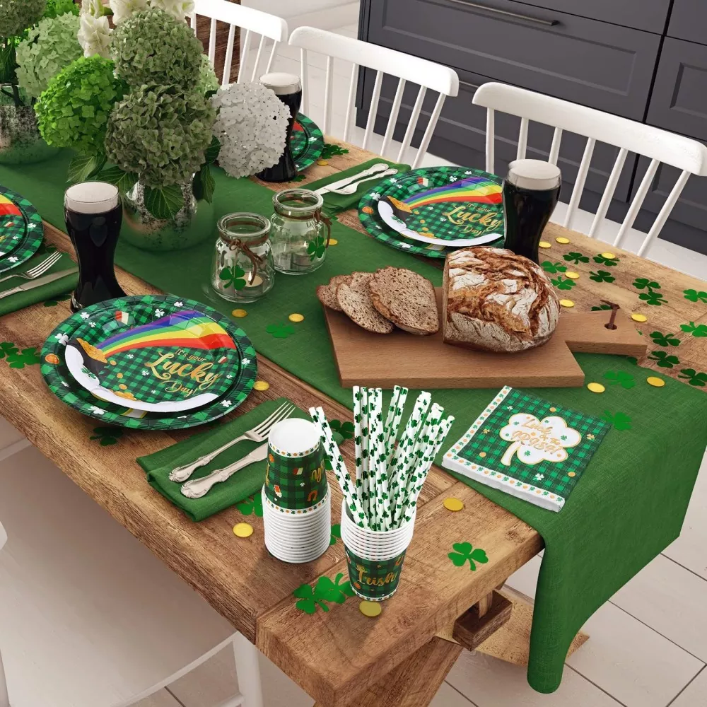 Varje år i mitten av mars intensifieras den gröna atmosfären på St Patrick's Day. Oavsett om det är ett affärsevenemang eller en familjesammankomst är det avgörande att fylla på med festliga föremål. YSD:s St. Patrick's Day engångsservisset är ett populärt val. Det här setet har det klassiska St. Patrick's Day-grönt och har semestermotiv som shamrocks och leprechauns, som omedelbart fångar den festliga stämningen. Oavsett om en restaurangägare köper i lösvikt för en kundmottagning eller en familj håller på att fylla på för en fest, är detta set perfekt för alla tillfällen. YSD erbjuder också pålitlig leverans, vilket säkerställer snabb leverans efter att du har lagt din beställning, vilket eliminerar behovet av onödiga förseningar.