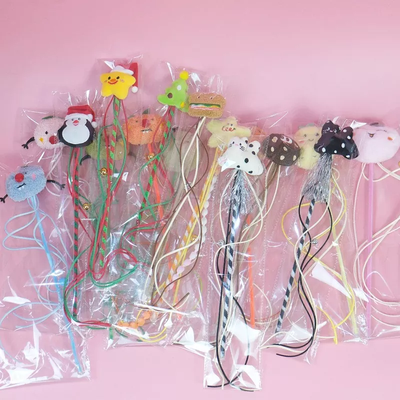 Denna kattteaser antar en tecknad form med högt värde, med färgglada tofsar och klockor, och den visuella och hörselnalstimuleringen lockar kattens uppmärksamhet. Tasselmaterialet är mjukt för att undvika att skrapa husdjuret, och det skarpa ljudet från den inbyggda klockan kan stimulera kattens nyfikenhet. Rodkroppen är tillverkad av lätt och hållbar ABS -plast med måttlig längd, vilket är bekvämt för ägaren att kontrollera. Samtidigt har det testats för att motstå ofta repor och bita av katter.