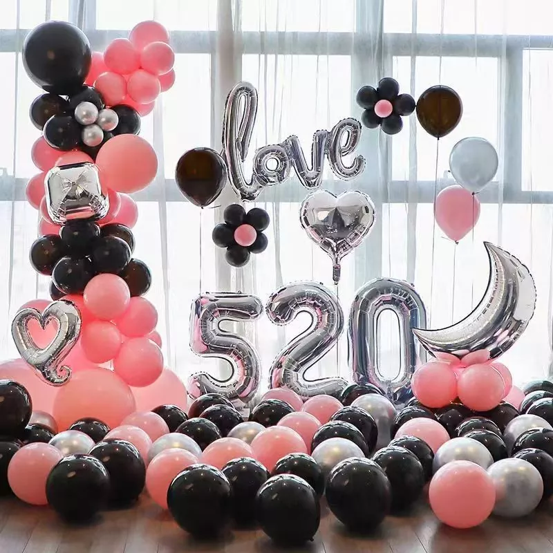 Uppsättningen har rika och olika stilar, inklusive ballonger i olika färger och former. Det finns klassiska röda och rosa ballonger, som symboliserar passionerad kärlek; Det finns också drömmande lila och ljusblå ballonger. När det gäller form, förutom den gemensamma cirkeln, finns det också speciella former som kärlek och bokstäver. Till exempel kan stora hjärtballonger direkt uttrycka kärlek; "Love" -brevballonger kan kombineras till romantiska bekännelser för att tillgodose dina olika kreativa layoutbehov och enkelt skapa en unik valentinsdag romantisk scen.