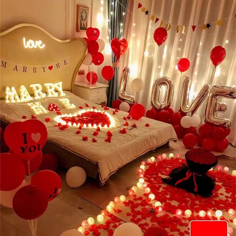 Alla hjärtans ballonguppsättning har ett brett utbud av applikationsscenarier. Om du förbereder dig för ett romantiskt förslag, ordna ballongerna till en hjärtform och sätta en ring i mitten. När din älskare går in i detta utrymme fullt av ballonger kommer överraskning och beröring att uppstå spontant; För alla hjärtans dagsmiddag, ordna ballonger runt bordet för att omedelbart förbättra matatmosfären; Om du vill skapa en varm och romantisk värld för två personer hemma, dekorera rummet med ballonger för att låta kärleken genomsyra varje hörn. Dessutom är det också lämpligt för restauranger, hotellrum och andra platser där par går och lägger till mer romantik till alla hjärtans dag.