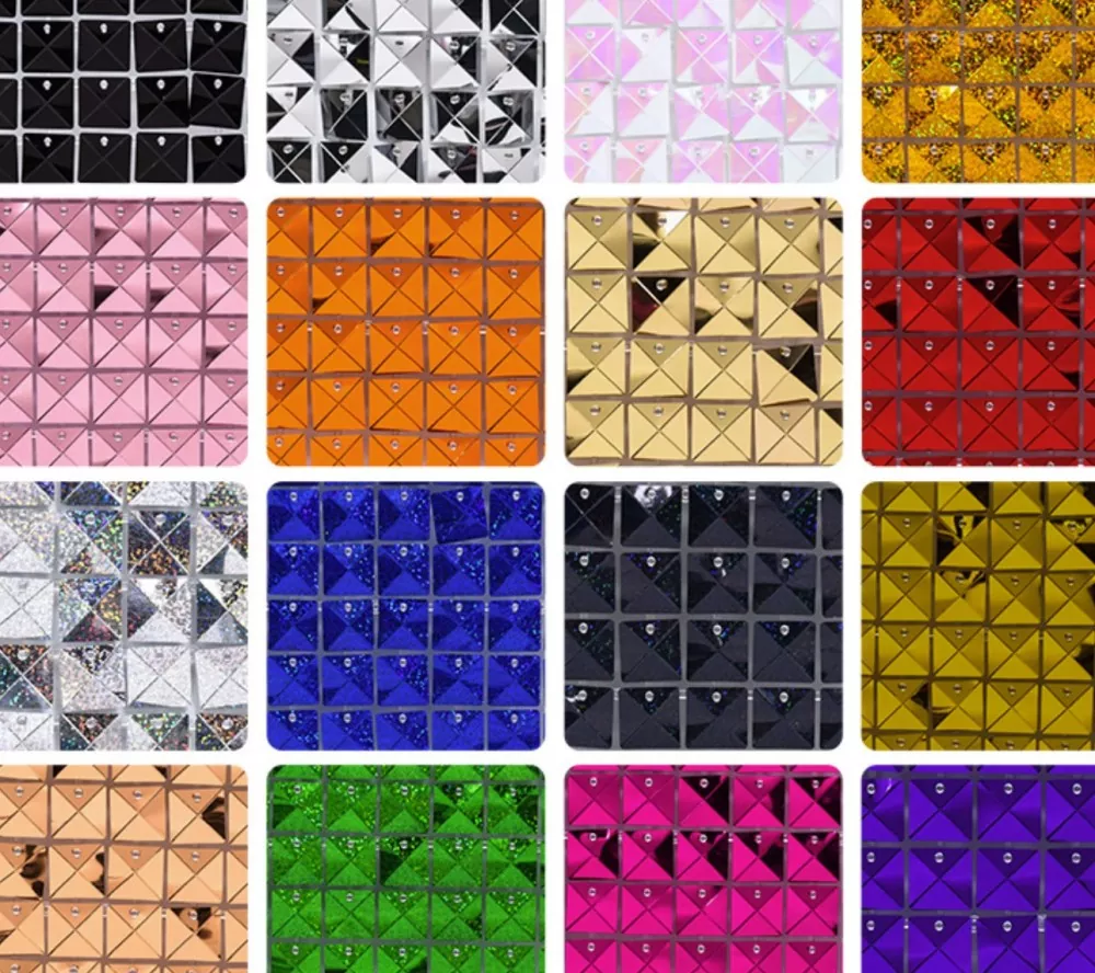 1. Specifikationerna för skimmerväggen är olika, vanligtvis 30 × 30 cm. Varje bräde består av 100 små runda paljetter. Paljetterna är av olika färger och bländande. Vårt företag kan också tillhandahålla anpassade tjänster i färg och storlek.